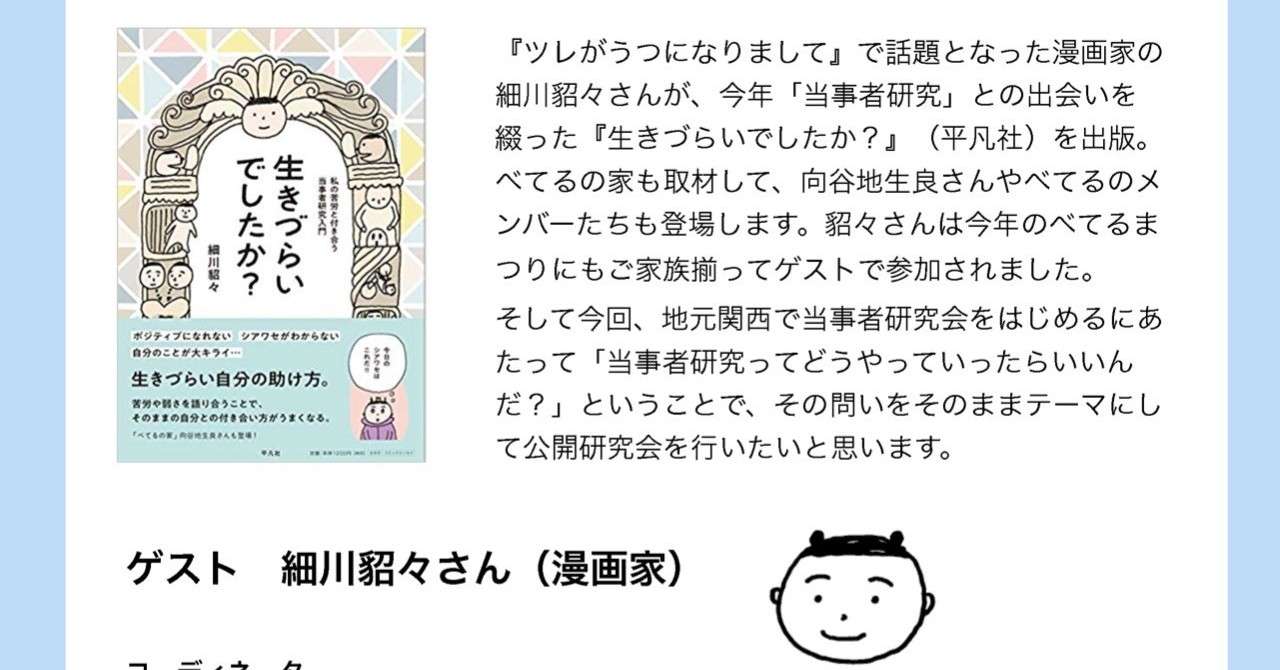 漫画家の細川貂々さんと 当事者研究ってどうやったらいいんだ 公開研究会 江連麻紀 えづれまき Note