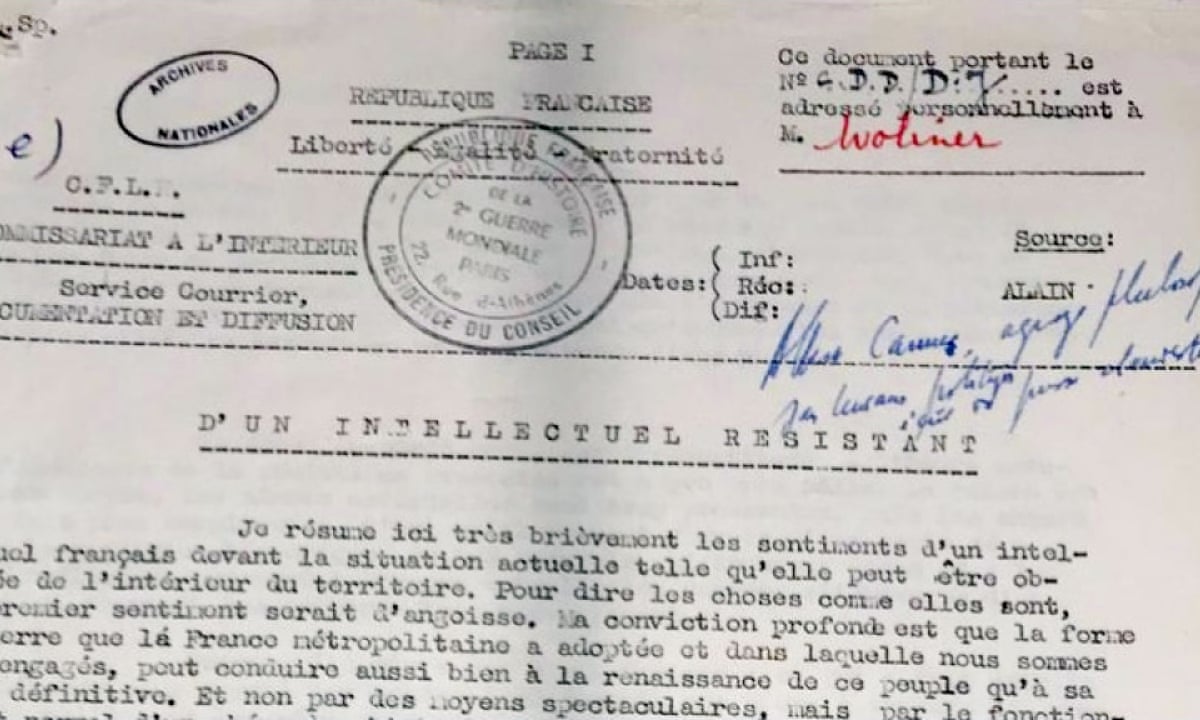 Wartime Albert Camus Letter Lays Bare His Vichy Era Anguish Albert Camus The Guardian