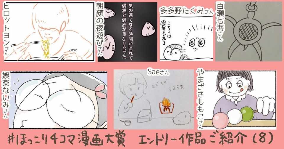 ほっこら〜のみなさん、こんばんは。 ただ「やってみたい!」という私個人の思いだけで始めた「#ほっこり4コマ漫画大賞」。ご応募いただいた作品の紹介記事に、ここまで大きな愛のウェーブを返していただけるとは思いませんでした。 みなさんの作品にこめた愛に対して、私から精一杯の.